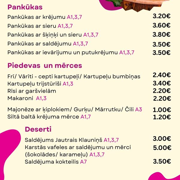Banketiem tiek piedāvāta ēdienkarte pēc individuālas vienošanās.